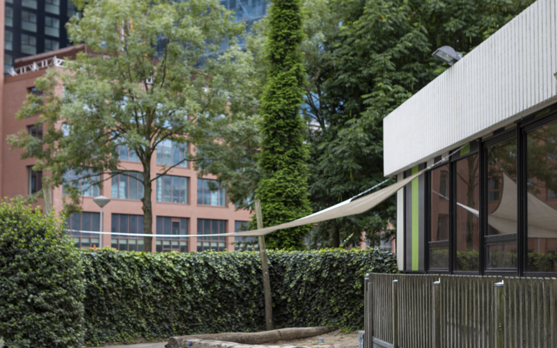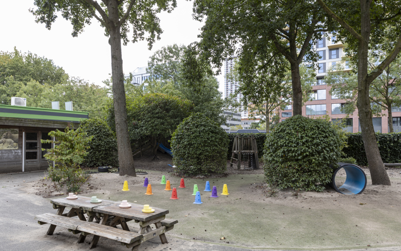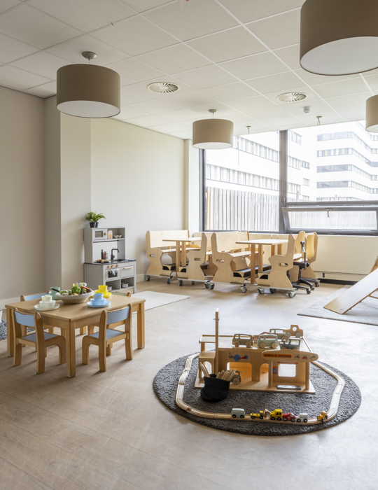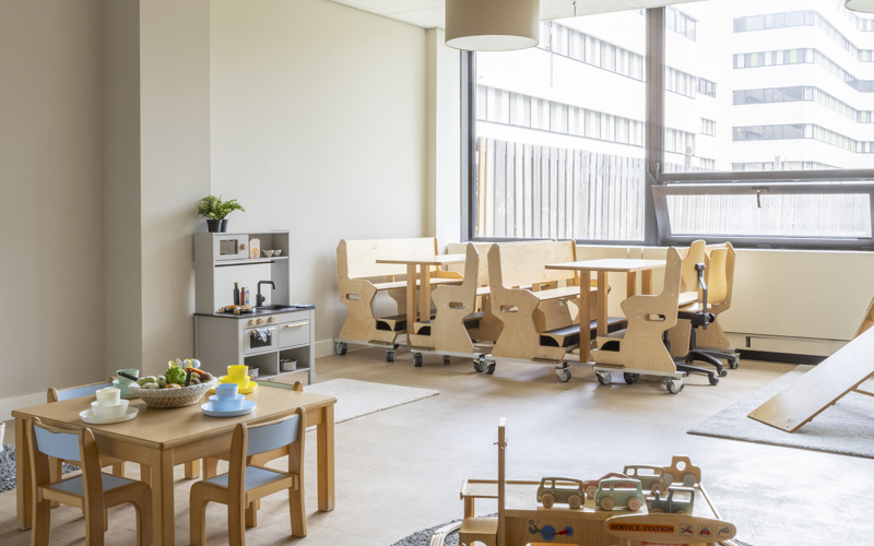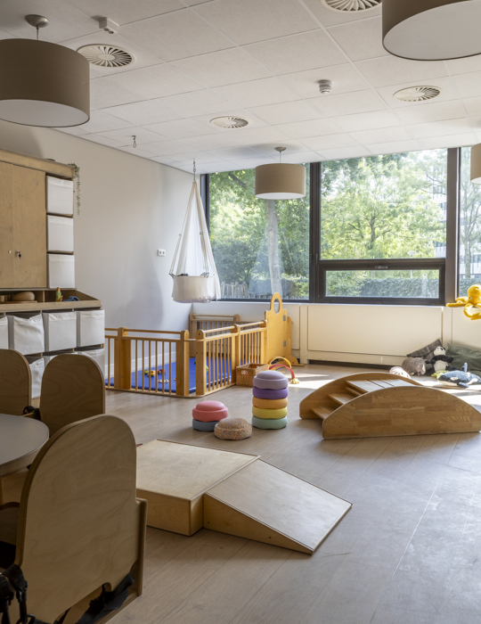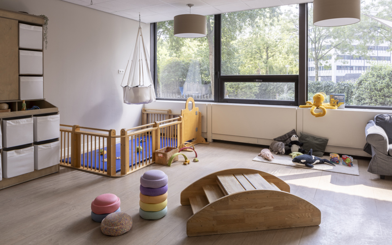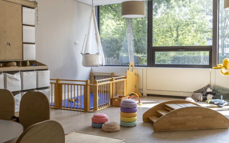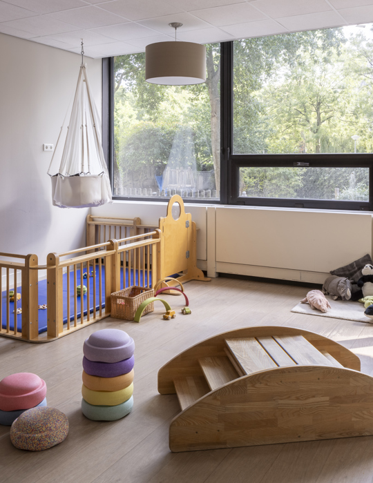 In the America building of the multifunctional Atlas Arena Complex, our branch is an oasis of calm! We have 4 baby groups (0-2 years), 4 toddler groups (2-4 years) and 1 bilingual group. A large green garden surrounds the building. The toddlers can climb, dig and run around. For the littlest ones, there is a separate baby garden where they can play undisturbed. We also have a bilingual group, where both Dutch and English are spoken.