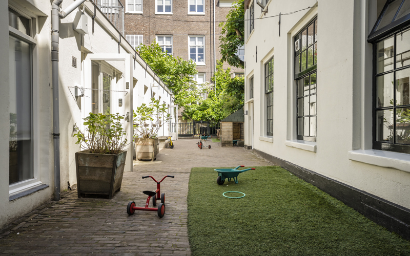 CompaNanny Prinsengracht is a hidden gem! Through an alley on Prinsengracht, you enter a cosy playground. On either side of the playground are the baby and toddler groups. But there is even more space to enjoy playing outside with the children. Above the toddler groups there is also a roof terrace where they can play. So even though you're in the middle of the city, at CompaNanny Prinsengracht you experience wonderful peacefulness.