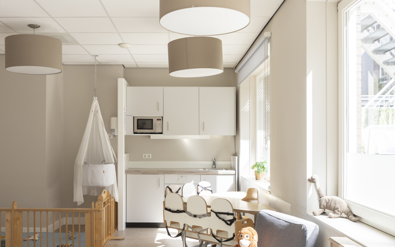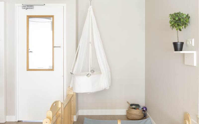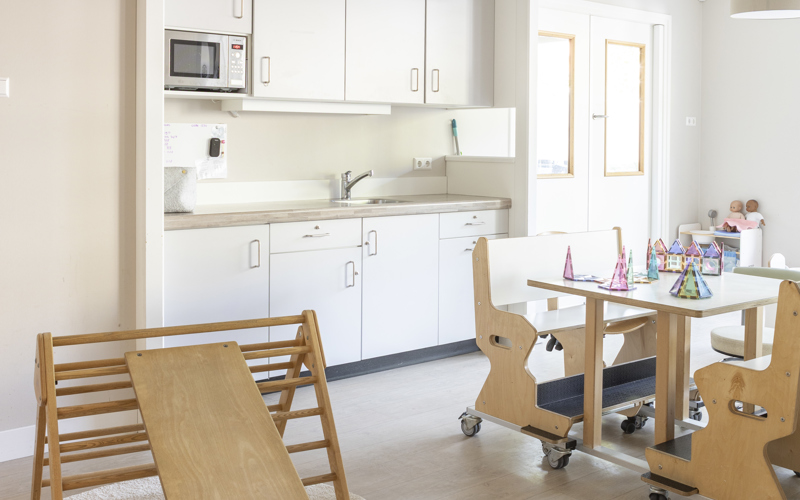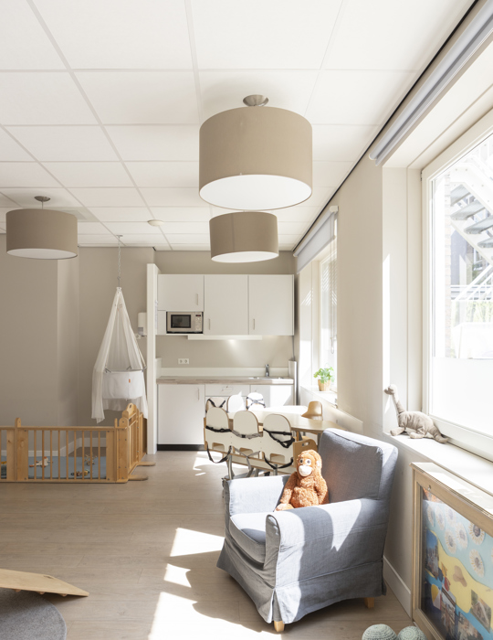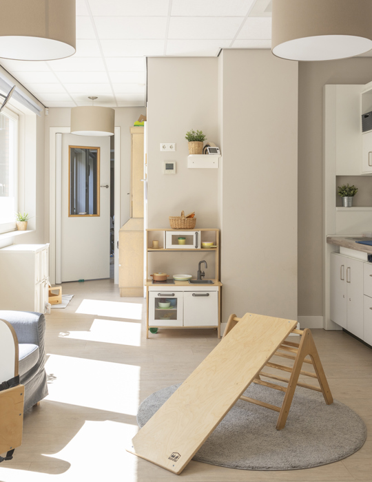 Our 5 baby groups (0-2 years) and 3 baby-toddler groups (1.5-4 years) are all bright and spacious. At this branch, there is plenty of room for activity as we have our own gym but also a beautiful indoor garden for the children to play in. We also like to make music with the children. Every second week, a music artist from Memo visits us!