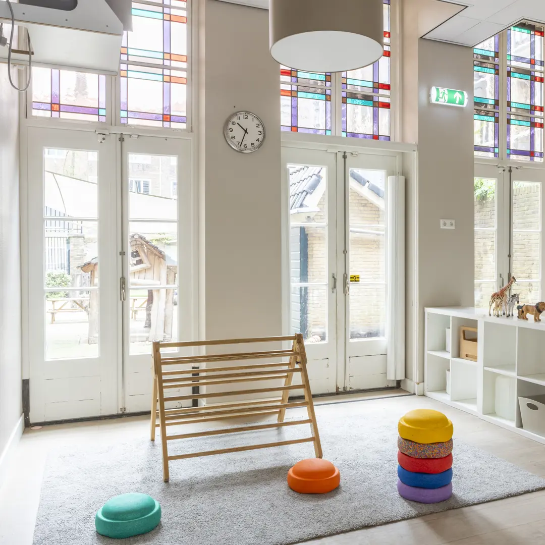 Our CompaNanny Daycare is located on the ground floor of the former convent. Here we have 6 baby groups (0-2 years) and 3 toddler groups (2-4 years). The groups have been transformed into bright spaces and there is huge outdoor space for the children to play. Several gardens surround the building, including a baby garden! In the afternoon, we also serve a healthy hot lunch at this location.