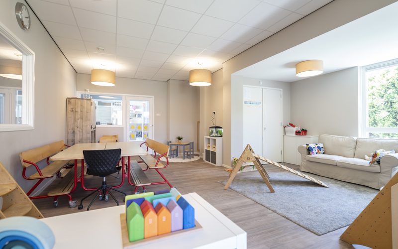 In a residential area and 100 metres from the heath, you can find our CompaNanny Musschenbroekstraat branch in Hilversum-Oost. Here we offer Daycare for children aged 0-4 in a beautiful, new and bright building with a nice garden at the front and back.