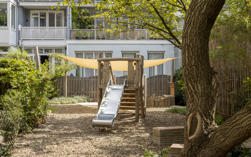 CompaNanny Baarsjes is met recht uniek te noemen. Onze vestiging heeft namelijk een tuin van 650 m2! Probeer dat maar eens ergens anders in Amsterdam te vinden. We hebben babygroepen (0-2 jaar) en peutergroepen (2-4 jaar). De ruim opgezette en lichte groepen bevinden zich allemaal rondom de tuin, dus er wordt lekker veel buiten gespeeld. In de middag serveren we ook op deze locatie een heerlijke en gezonde warme lunch.