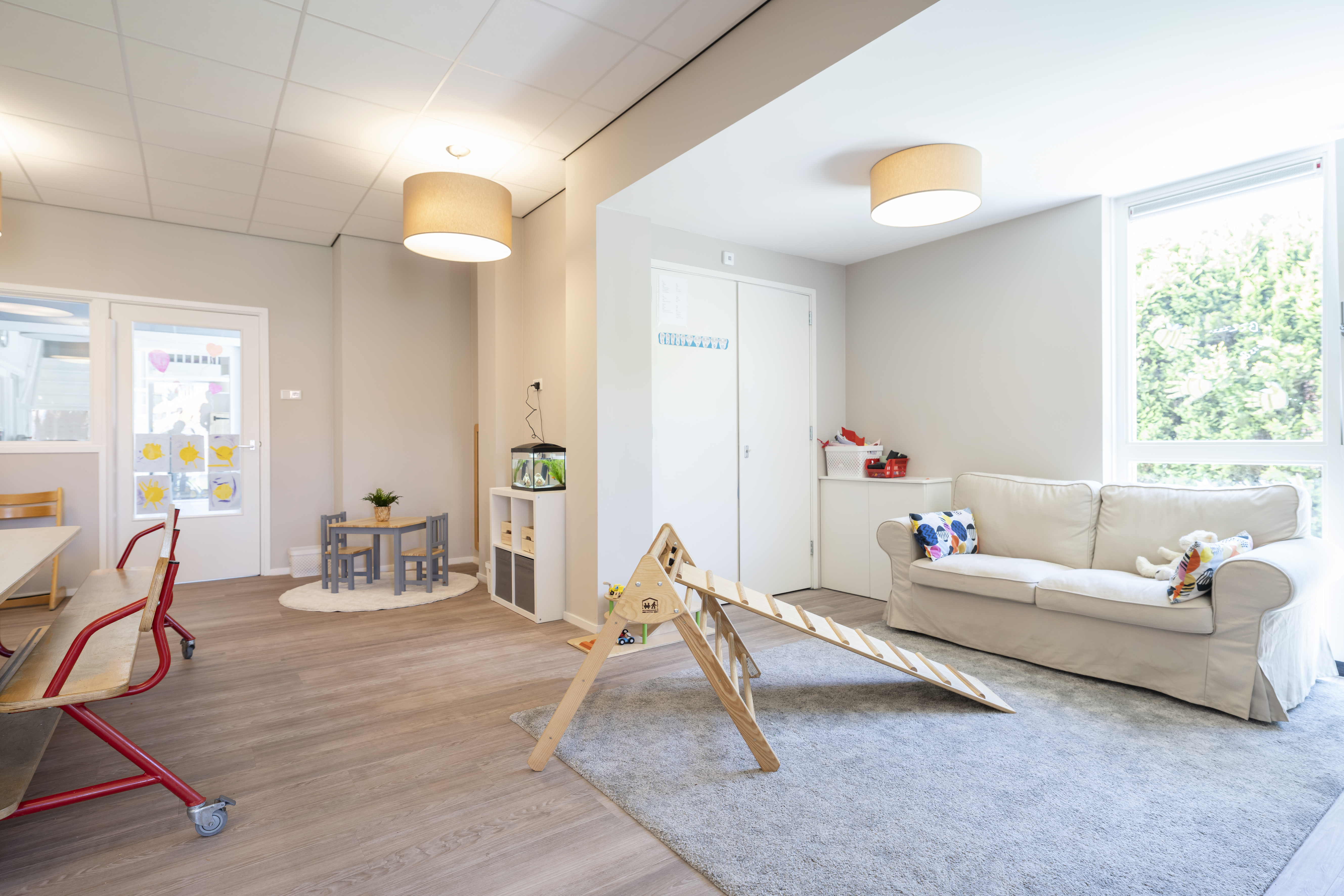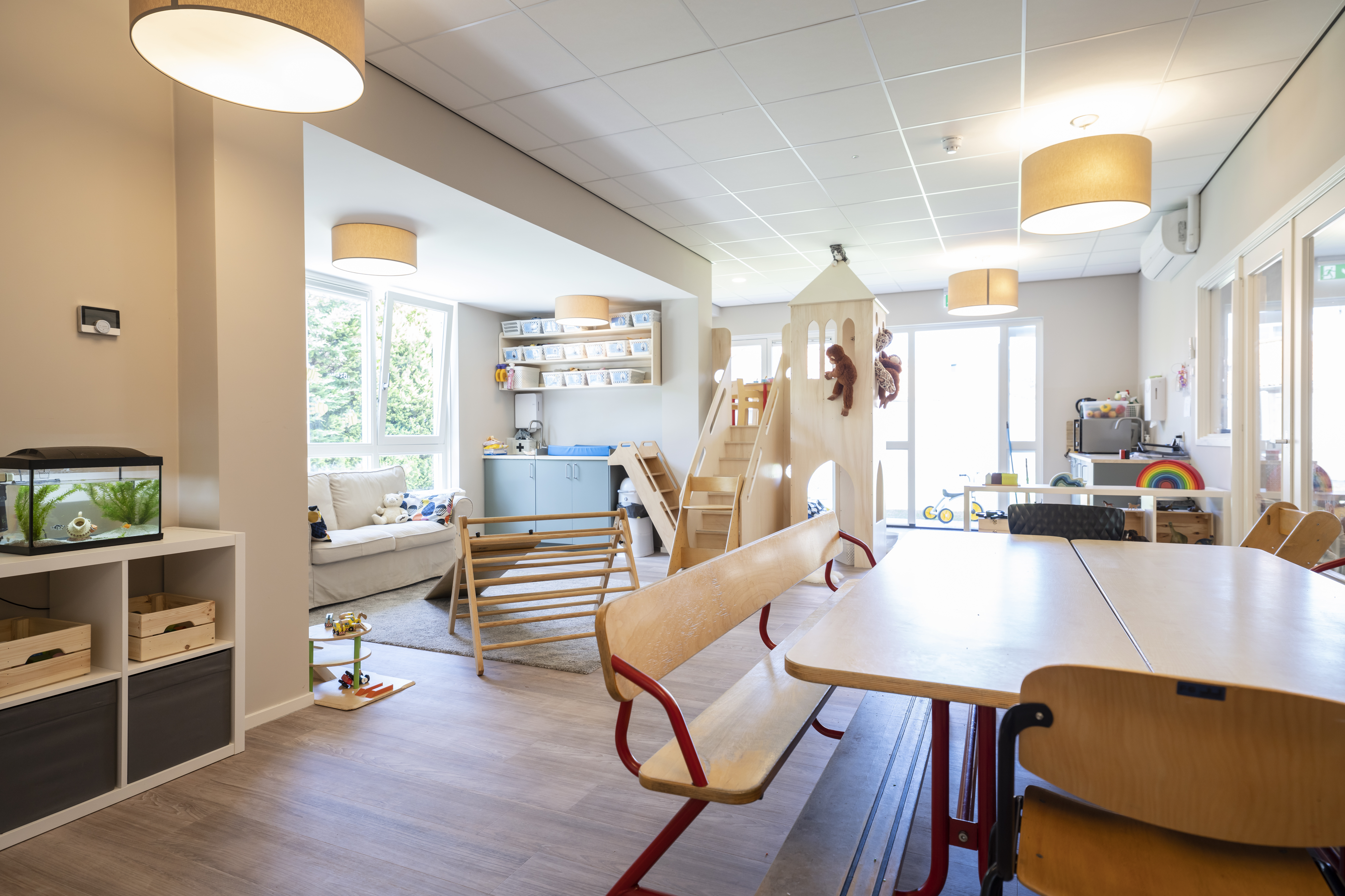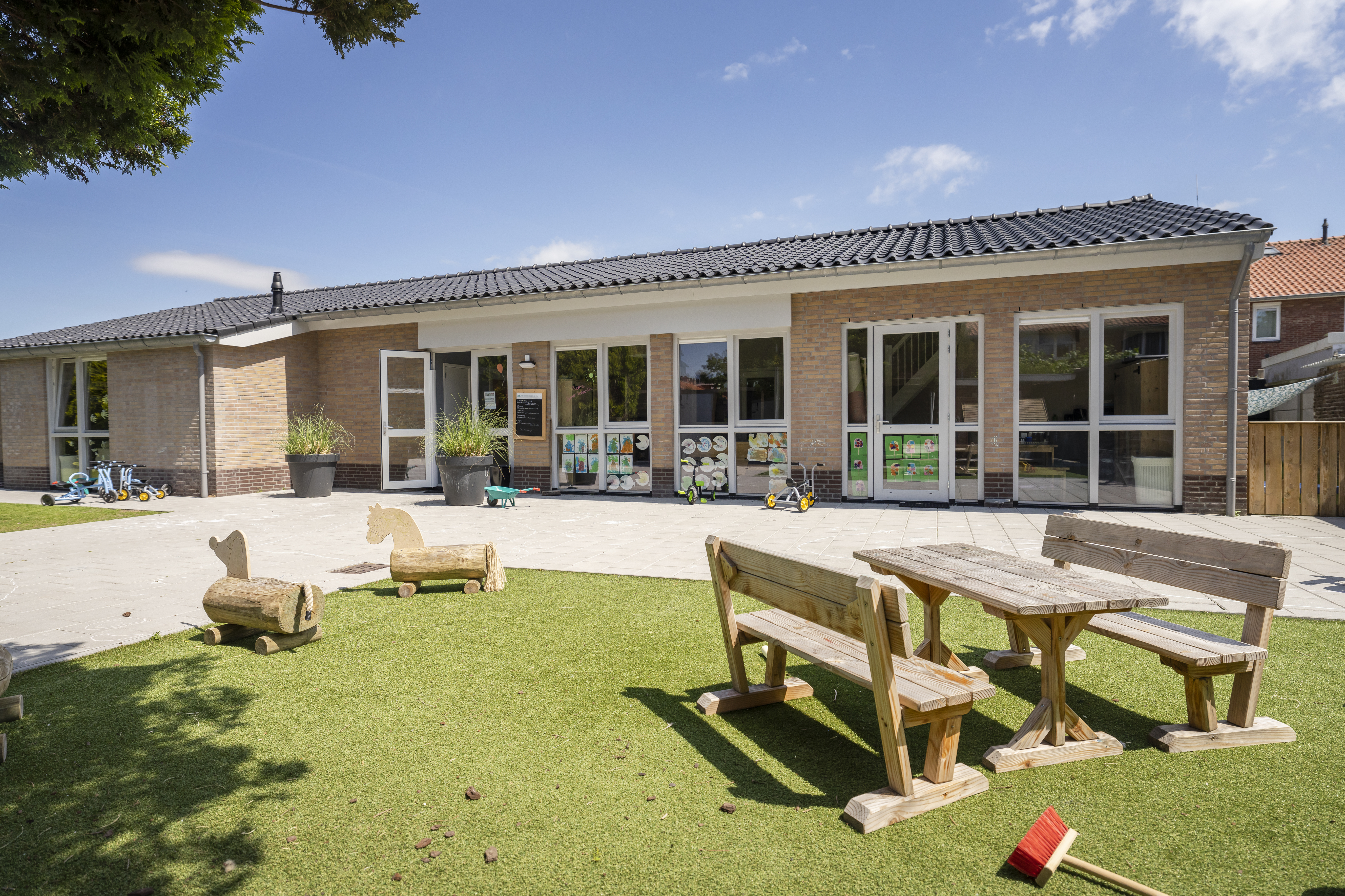 In een woonwijk en 100 meter van de hei ligt onze vestiging CompaNanny Musschenbroekstraat, in Hilversum-Oost. Hier bieden we Kinderdagverblijf voor kinderen van 0-4 jaar in een mooi, nieuw en licht pand met een fijne tuin aan de voor- en achterzijde.